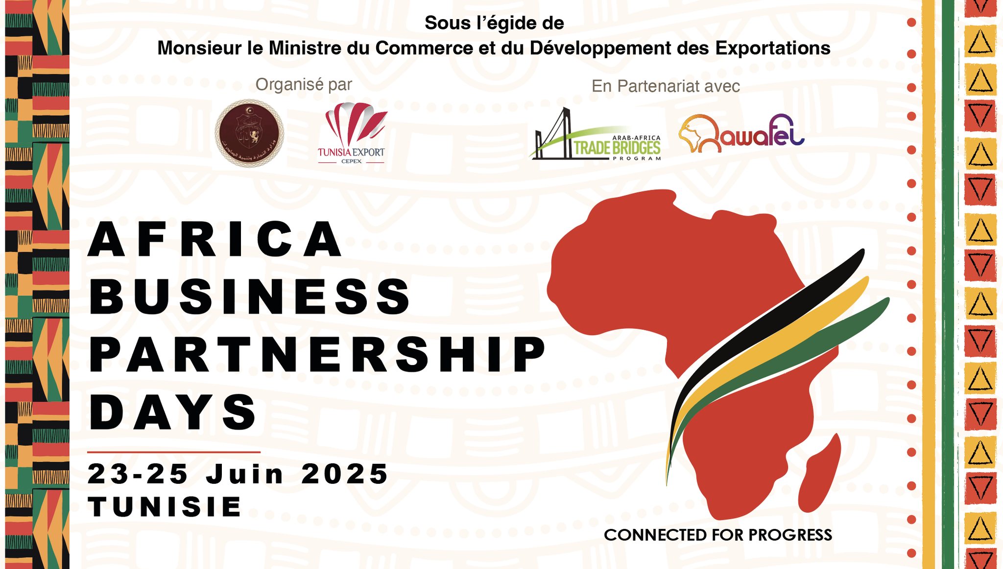 Sous l’égide du Ministère du Commerce et en collaboration avec le Ministère des Affaires Étrangères, le CEPEX organise la 1ère édition des Africa Business Partnership Days – ABPD 2025, avec le soutien des programmes Arab Africa Trade Bridges (ITFC) et Qawafel (AFD).