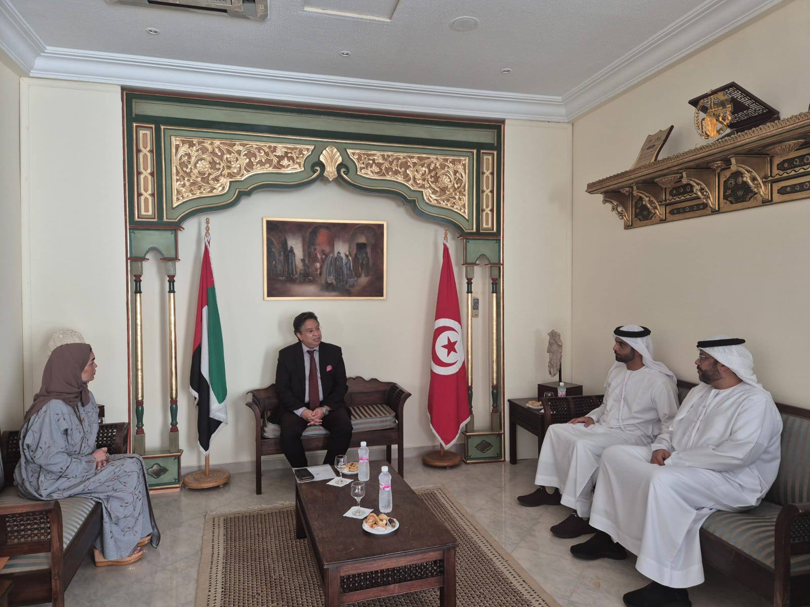 Rencontres professionnelles tuniso-émiraties à la Maison de l'Exportateur : des représentants de 100 entreprises tunisiennes actives dans les secteurs de l'industrie agroalimentaire, des produits de santé et des cosmétiques rencontrent une importante délégation de la "Coopérative de Sharjah".